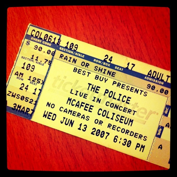 The Police show last night made me happy. Not as happy as I would have been had I been allowed to see them on the Synchronicity tour at age 13? 14?, (my hopes were kiboshed by the “parental units” on that one) but considering there were no albums after that one*, I can’t imagine the show would have been too drastically different (although maybe I would have heard “Tea in the Sahara” back then).